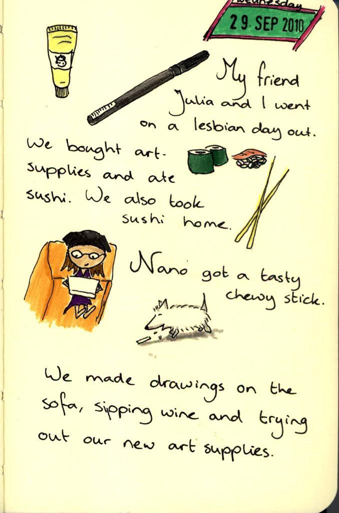 We made drawings on the sofa, sipping wine and trying out our new art supplies.