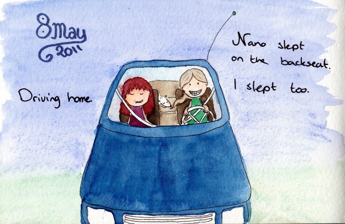2011.05.08 Date 2011-05-08 20:06 Tags car / driving / tired Comments Driving home. Nano slept on the backseat. I slept too.