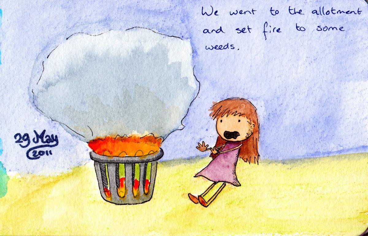 2011.05.29 Date 2011-05-29 14:14 Tags allotment / fire Comments We went to the allotment and set fire to some weeds.