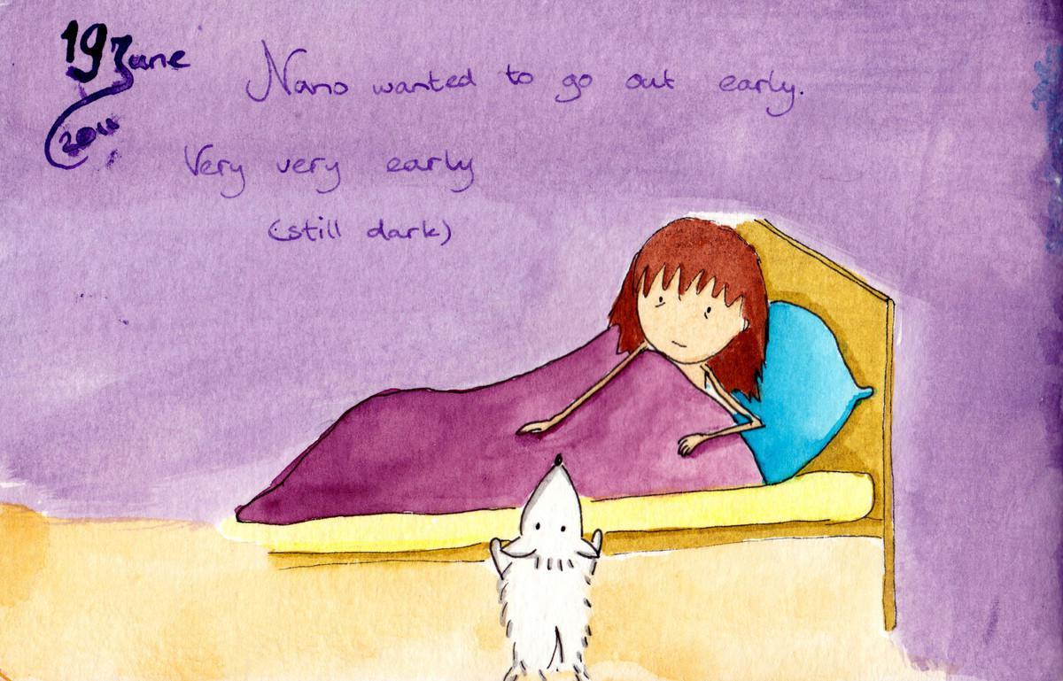 2011.06.19 Date 2011-06-19 01:01 Tags night / purple / sleepy / tired Comments Nano wanted to go out early. Very very early (still dark)