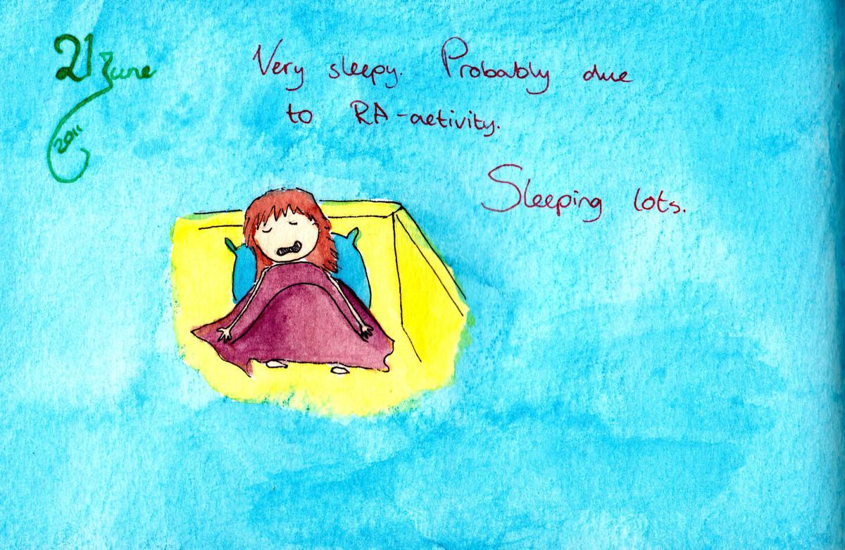 2011.06.21 Date 2011-06-21 01:05 Tags blanket / purple / rheumatoid arthritis / sleeping / sofa Comments Very sleepy. Probably due to RA-activity. Sleeping lots.