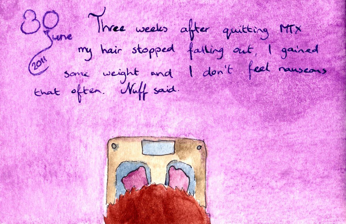 Three weeks after quitting MTX my hair stopped falling out, I gained some weight and I don’t feel nauseous that often. Nuff said.