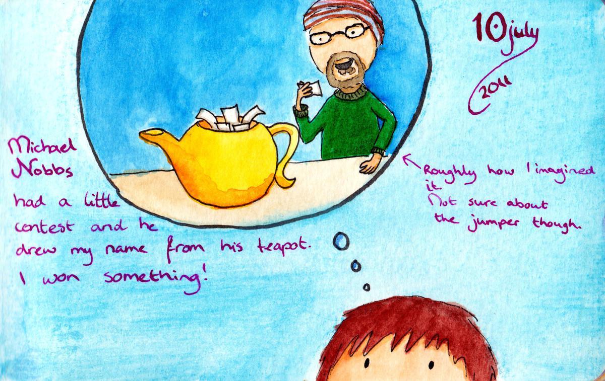 Michael Nobbs had a little contest and he drew my name from a his teapot. I won something!
