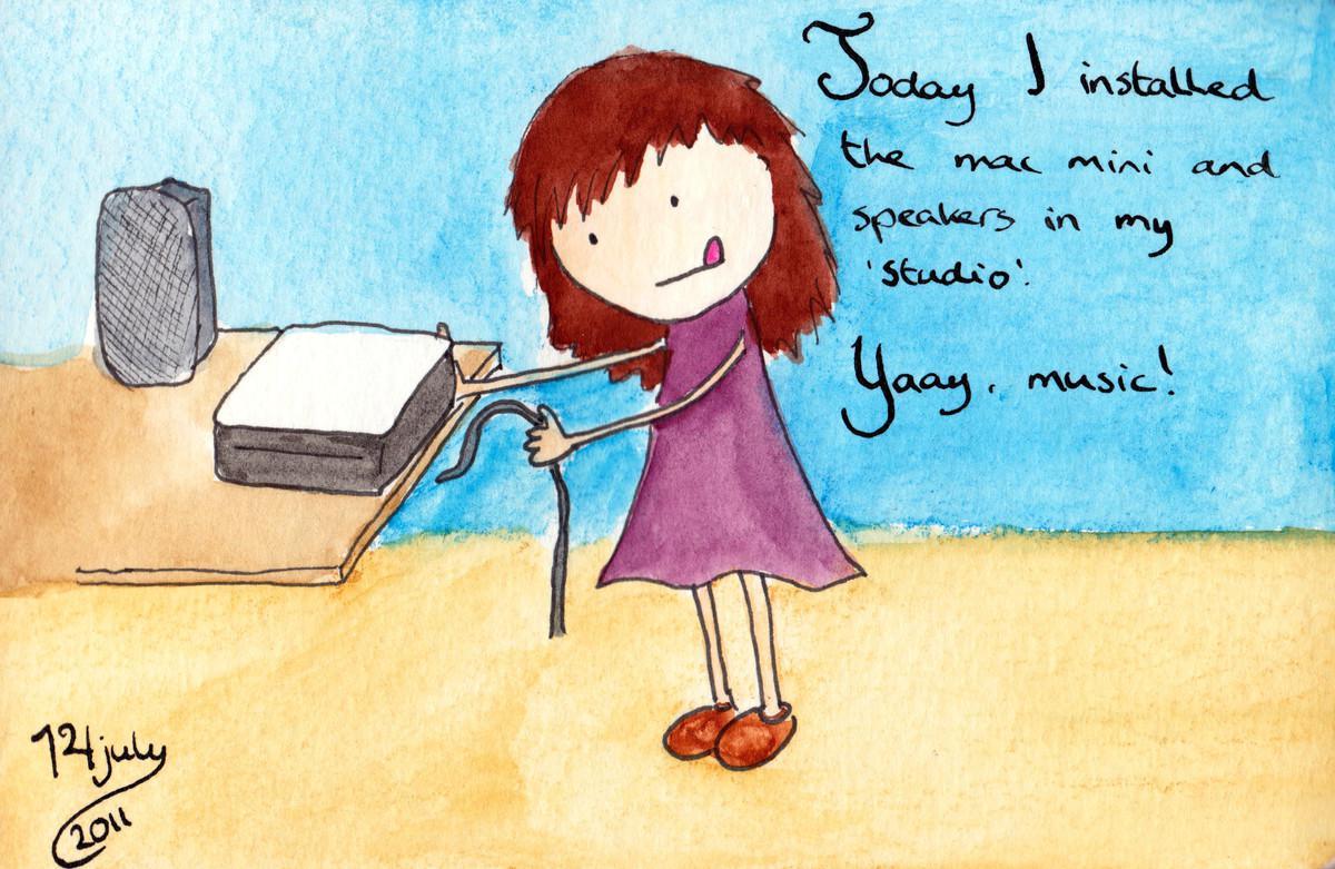 2011.07.14 Date 2011-07-14 11:41 Tags mac mini / music / studio Comments Today I installed the mac mini and speakers in my ‘studio’ Yaay, music!