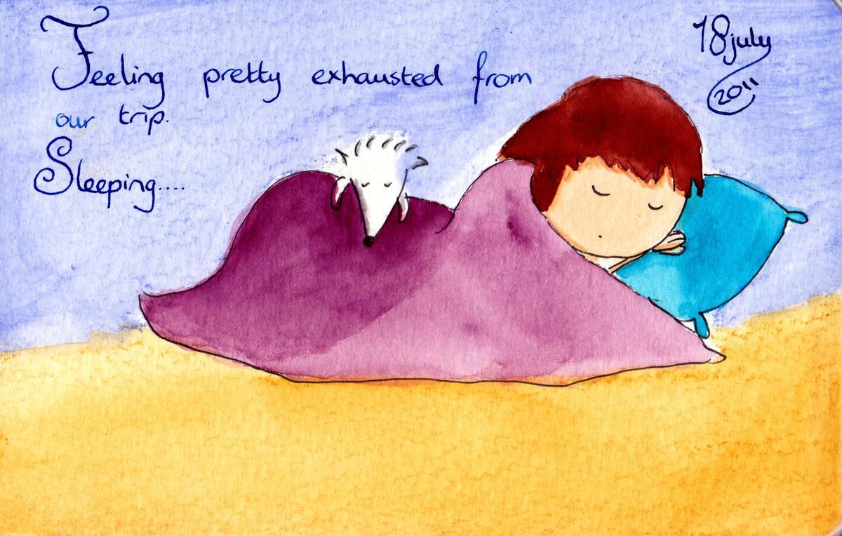 2011.07.18 Date 2011-07-18 11:48 Tags blanket / purple / sleep Comments Feeling pretty exhausted from our trip. Sleeping…