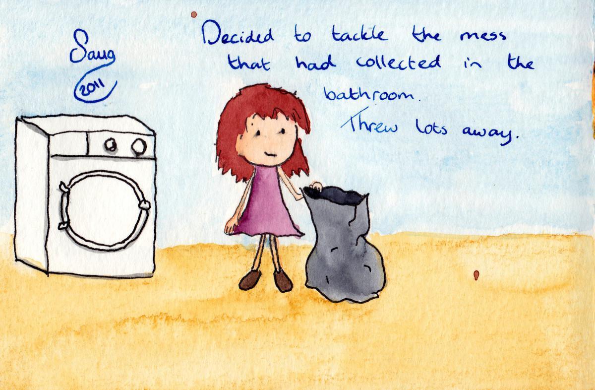 2011.08.08 Date 2011-08-08 14:05 Tags bathroom / cleaning / mess Comments Decided to tackle the mess that had collected in the bathroom. Threw lots away.