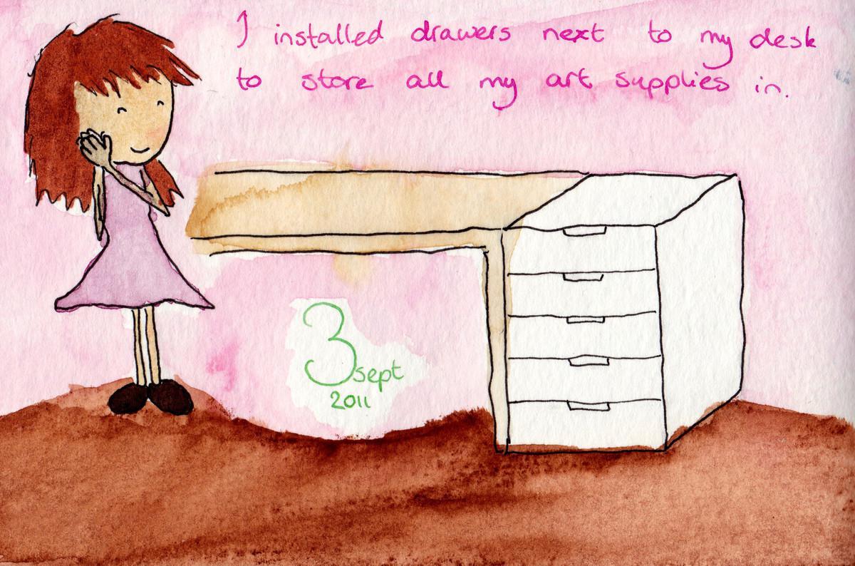 2011.09.03 Date 2011-09-03 01:20 Tags artsupplies / desk / drawer Comments I installed drawers next to my desk to store all my art supplies in.