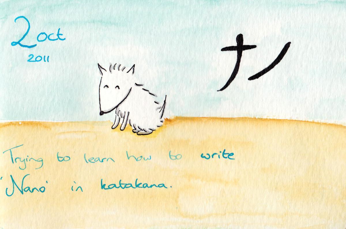 2011.10.02 Date 2011-10-02 00:27 Tags japanese / katakana / writing Comments Trying to learn how to write ‘Nano’ in katakana.