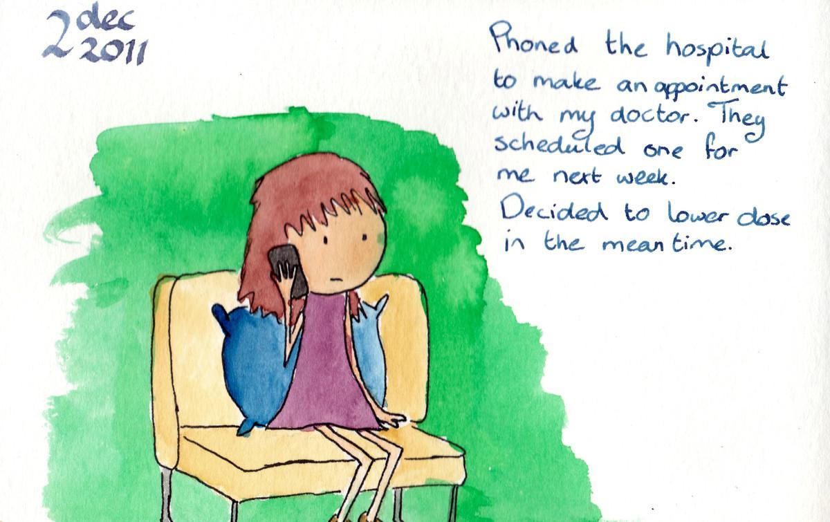 2011.12.02 Date 2011-12-02 17:06 Tags doctor / green / phone Comments Phoned the hospital to make an appointment with my doctor. They scheduled one for me next week.