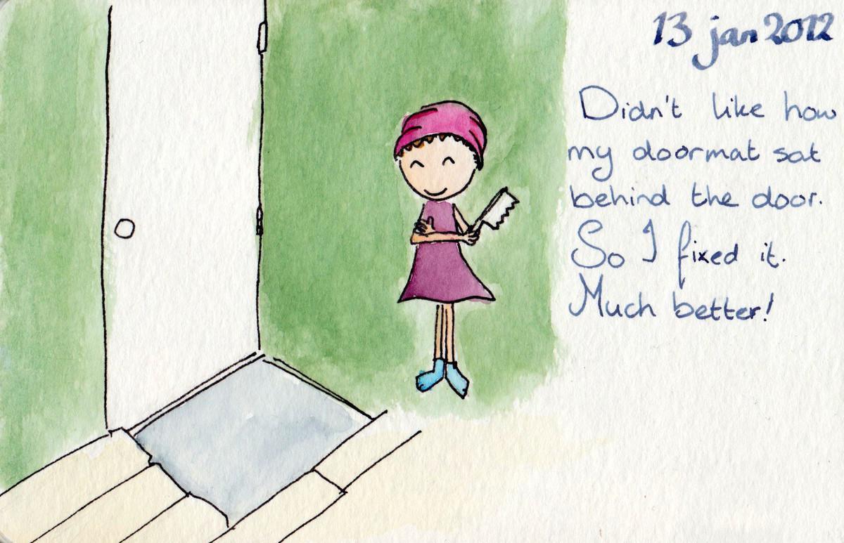 2012.01.13 Date 2012-01-13 18:24 Tags diy / doormat Comments Didn’t like how my doormat sat behind the door. So I fixed it. Much better!