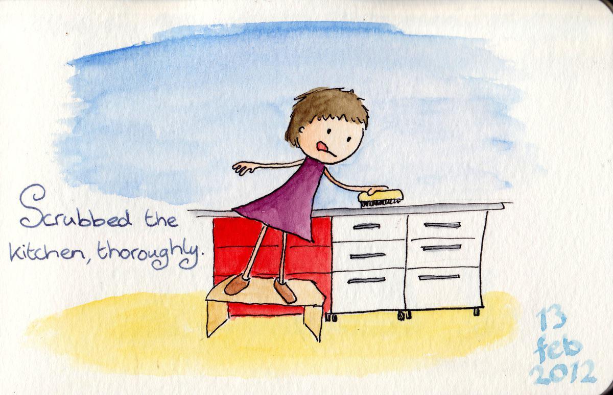 Scrubbed the kitchen, thoroughly.