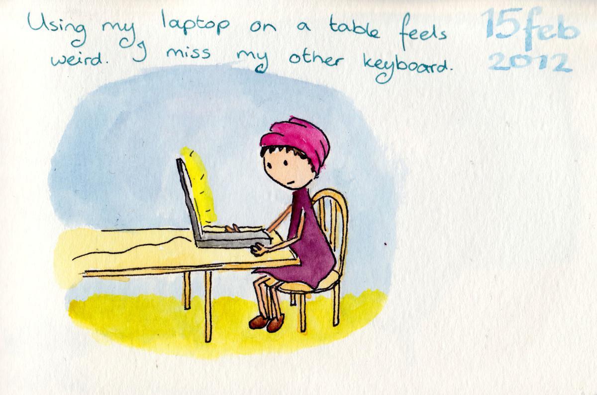 Using my laptop on a table feels weird. I miss my other keyboard.