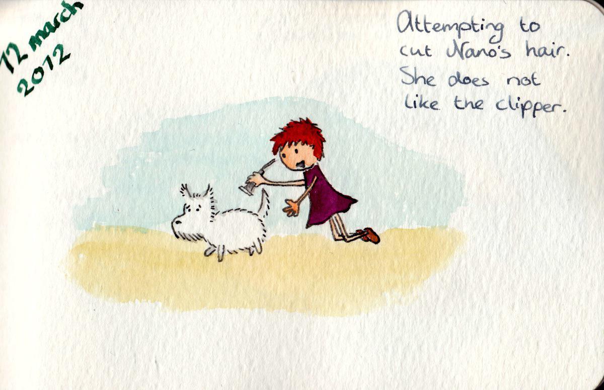 Attempting to cut Nano’s hair. She does not like the clipper.