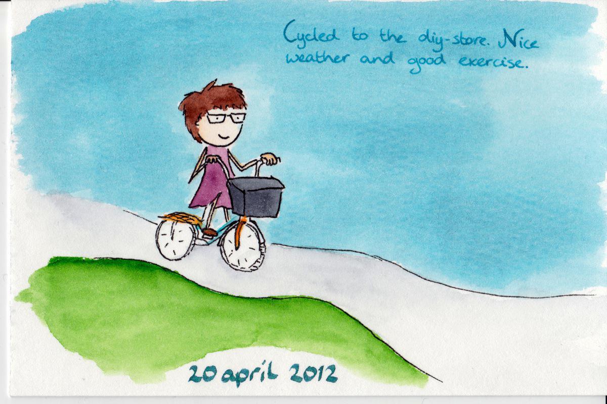 2012.04.20 Date 2012-04-20 16:49 Tags blue / cycling Comments Cycled to the diy-store. Nice weather and good exercise.