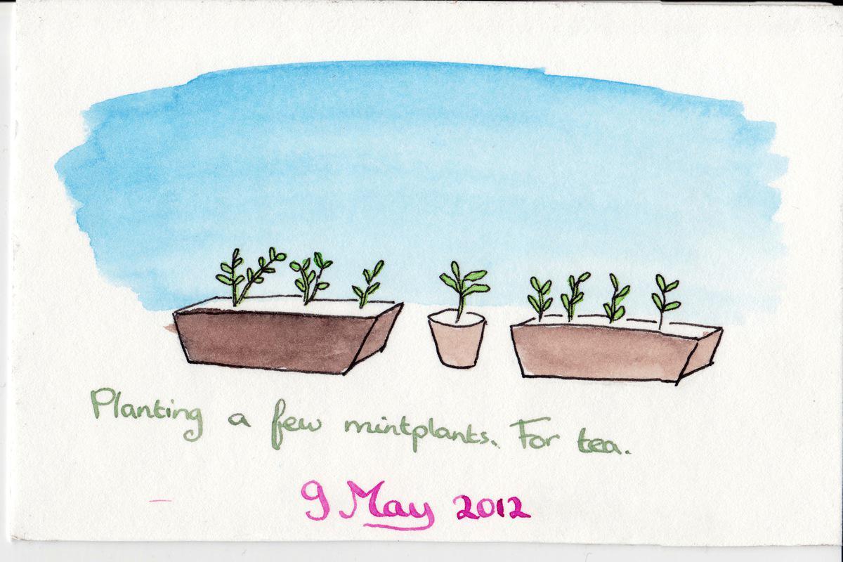Planting a few mintplants. For tea.