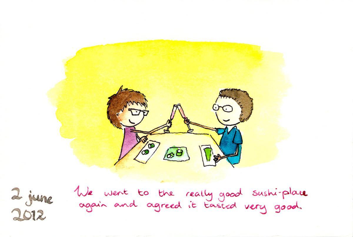 2012.06.02 Date 2012-06-02 18:00 Tags glasses / sushi Comments We went to the really good sushi-place again and agreed it tasted very good.