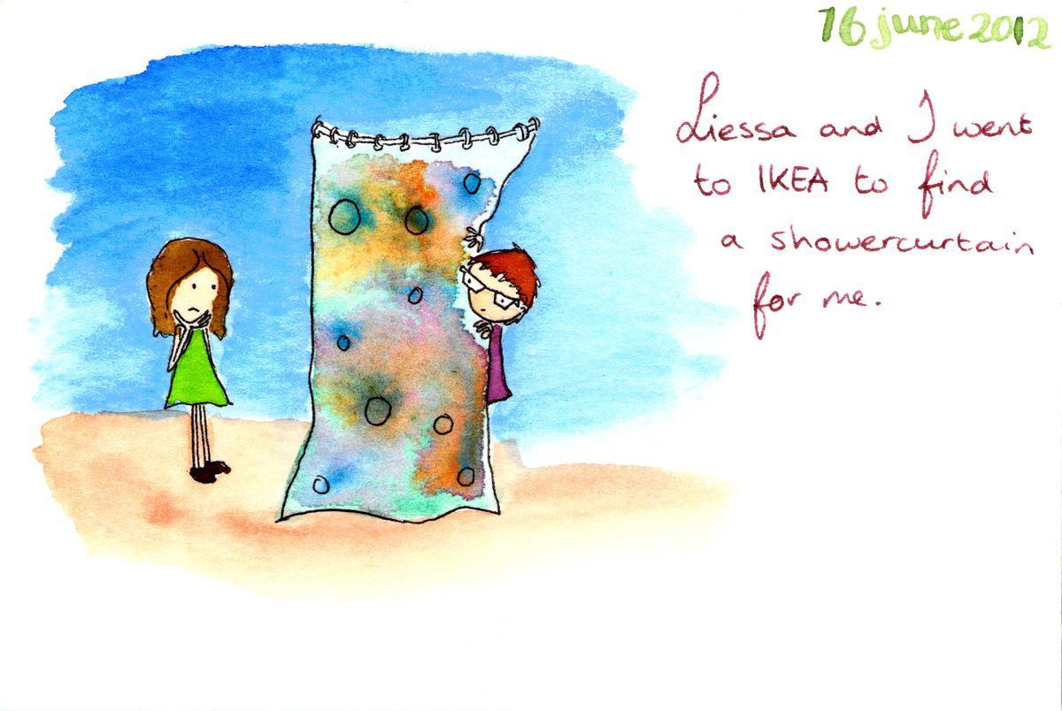 2012.06.16 Date 2013-12-16 18:00 Tags curtain / liessa / shower Comments Liessa and I went to IKEA to find a showercurtain for me.